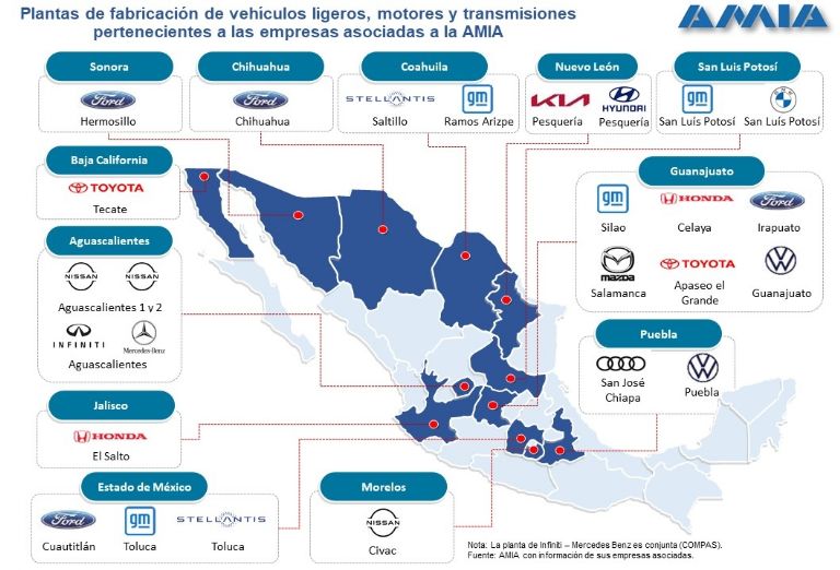 Algunas de las marcas que se cuentan con plantas armadoras de autos en México son:
