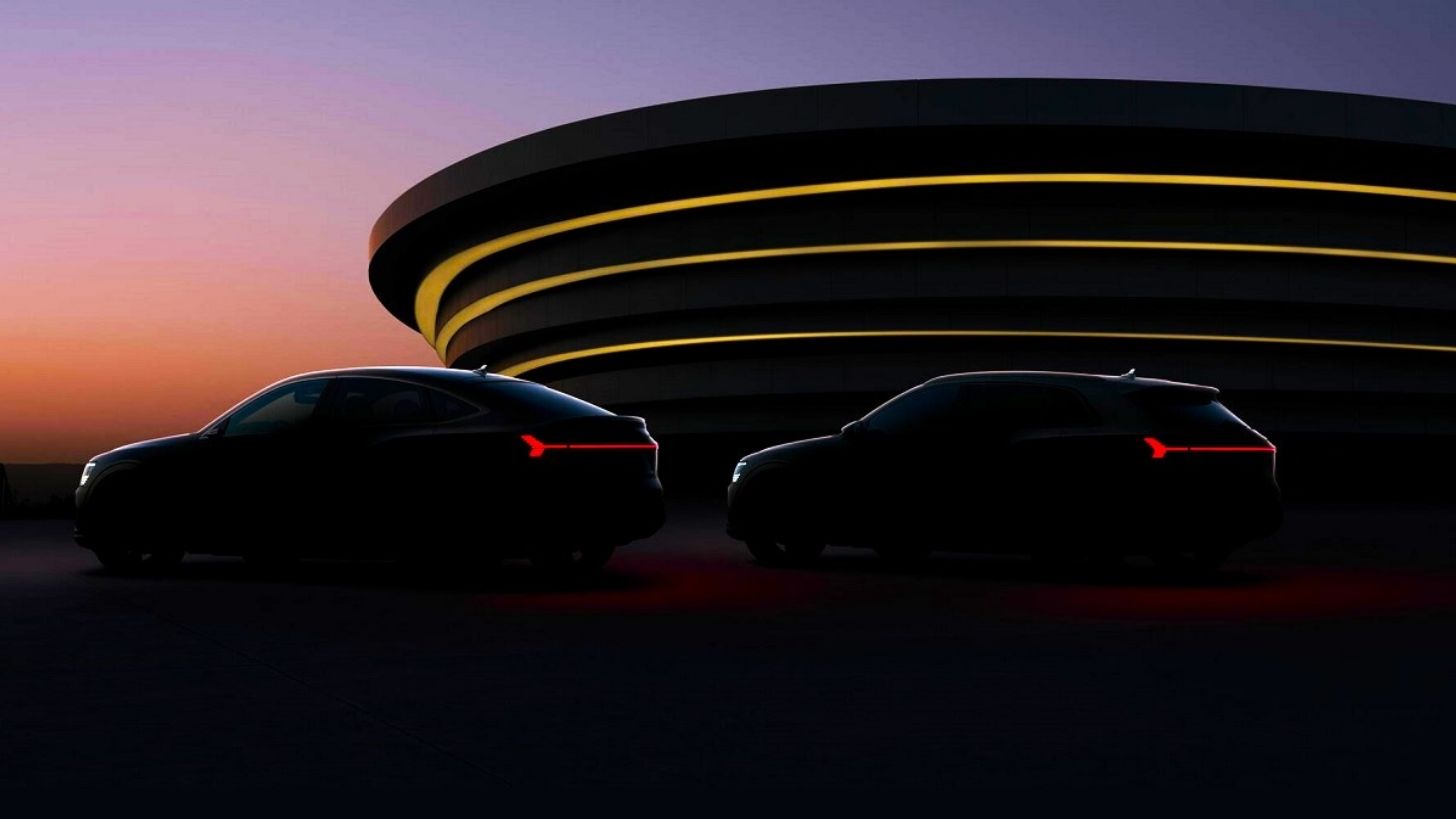 Como dijimos arriba, lo que deja ver el adelanto son apenas las luces traseras de las SUV eléctricas. Los gráficos y las luces LED se antojan ligeramente renovadas; en la imagen podemos ver una línea vertical en color rojo que atraviesa de lado a lado los autos, en cuyos extremos se remata con el faro en forma de flecha invertida.