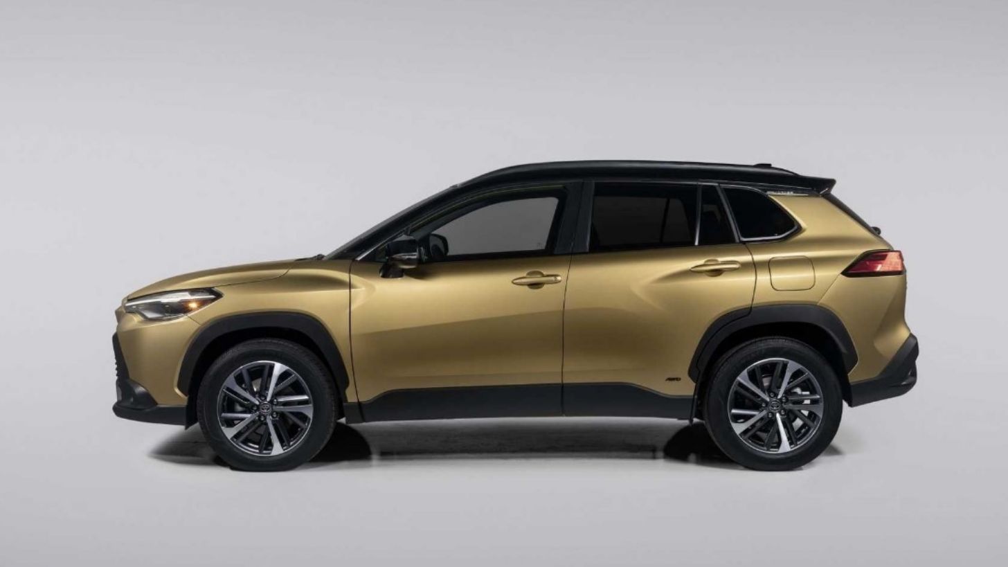 Esta Corolla Cross viene con adiciones interesantes, primeramente, en cuestión de diseño lleva elementos más deportivos y exclusivos para el exterior, como la incorporación de rines en gris y tonalidad en oro que la hacen resaltar.