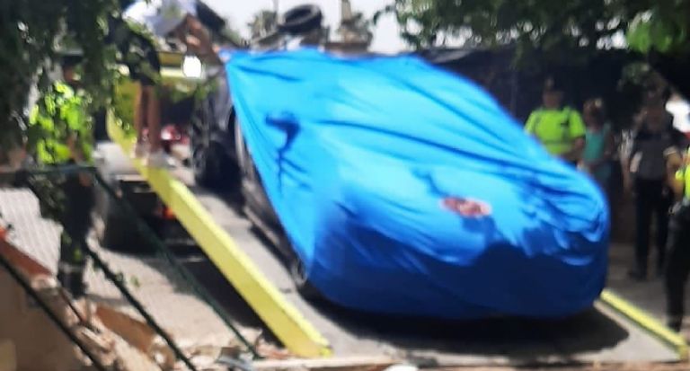 Como era de esperarse, horas más tarde cuerpos policiales hicieron su arribo al lugar del incidente y se llevaron el Bugatti para iniciar las investigaciones correspondientes, dejando ver los daños causados a la propiedad.