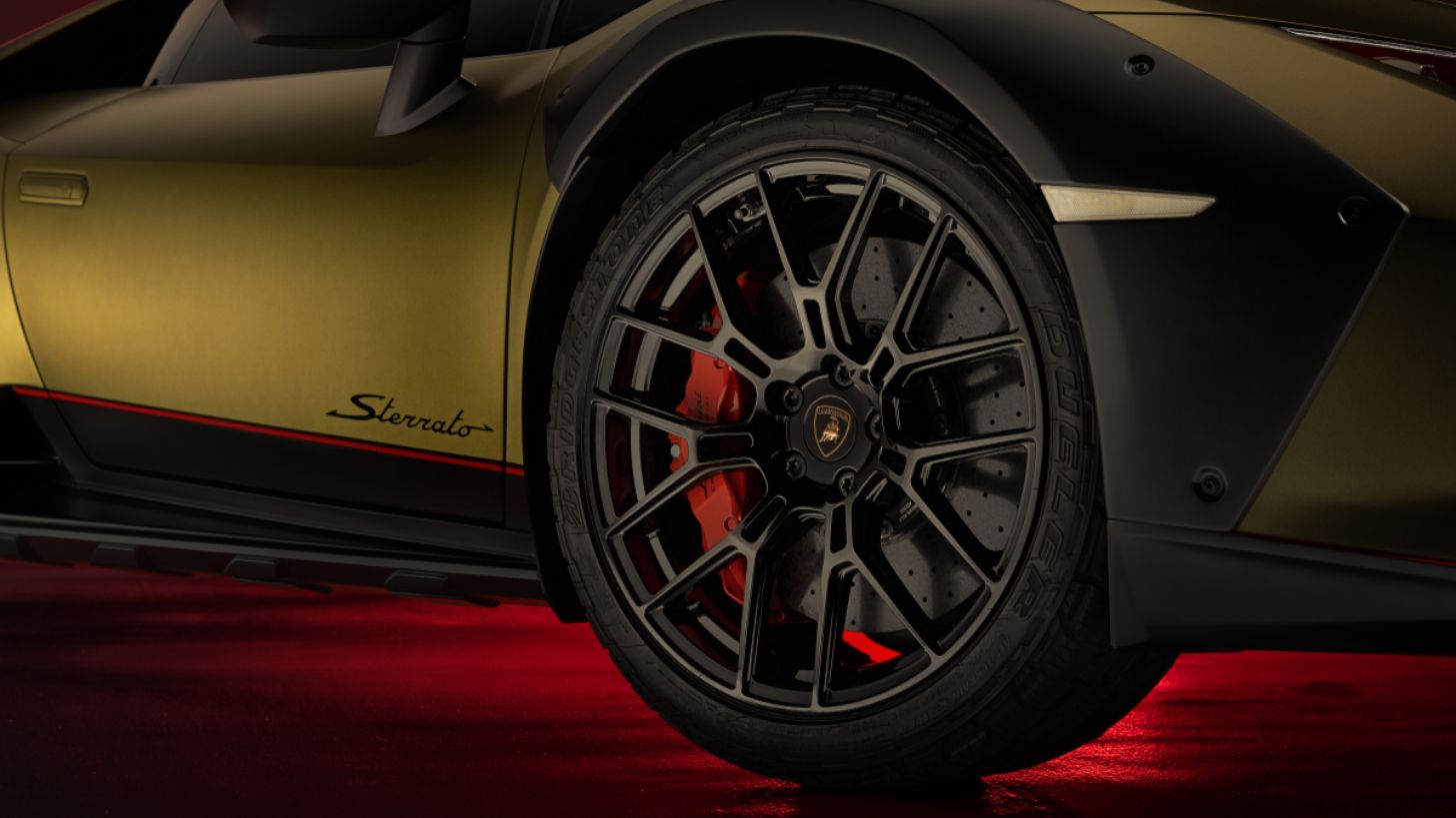 Estas llantas incluyen toda una serie de características únicas, pensadas para maximizar el agarre del Lamborghini en los terrenos más difíciles: grava, lodo e incluso zonas pantanosas o en la nieve. Las llantas lo logran a través de un dibujo especialmente diseñado para ello, además de una mezcla exclusiva de polímeros que maximizan el desempeño del auto en altas velocidades.