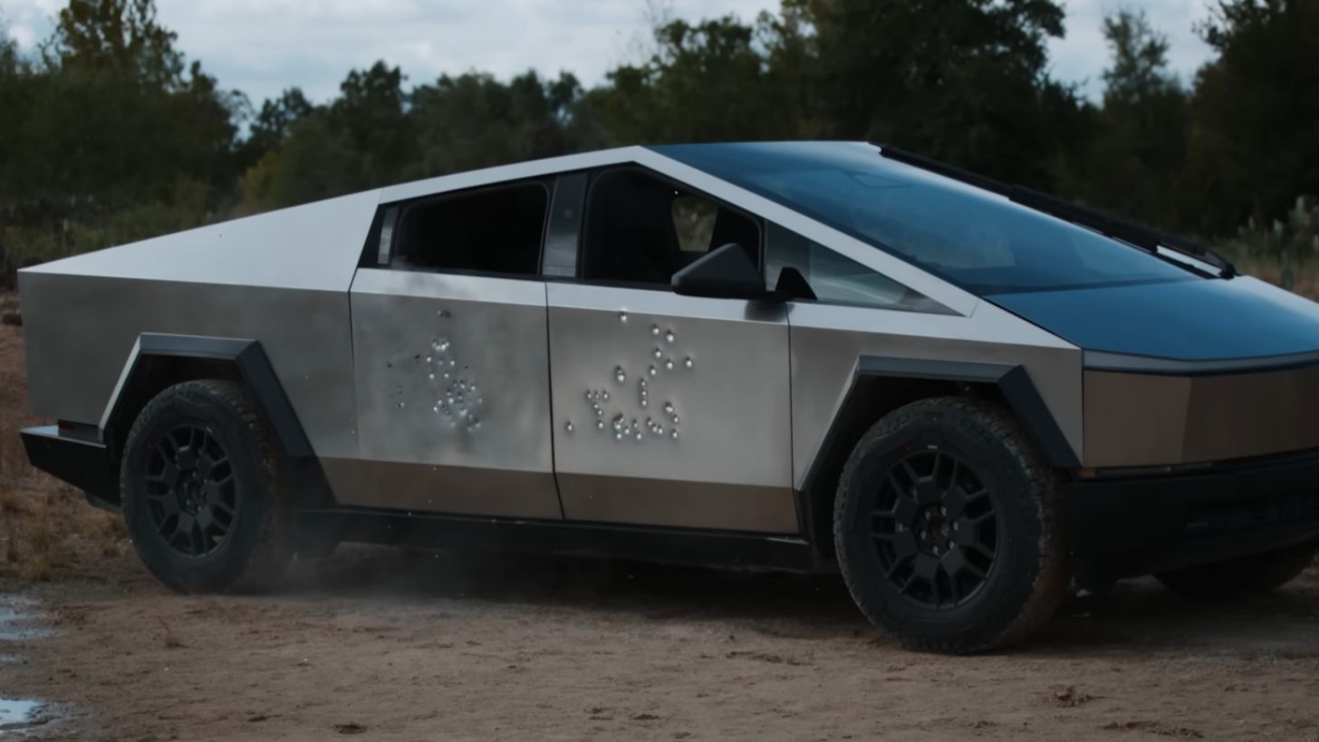 Uno de los videos que Tesla subió a su canal de YouTube para dar a conocer su pick-up eléctrico, es donde la ponen a prueba de balas. Recordemos que el Cybertruck está hecho con placas planas de acero inoxidable, por lo que, como se puede apreciar, se le disparó con distintos calibres. Así, Tesla pudo demostrar que la carrocería sólo sufrió algunas aboyaduras y no traspaso al interior del vehículo.