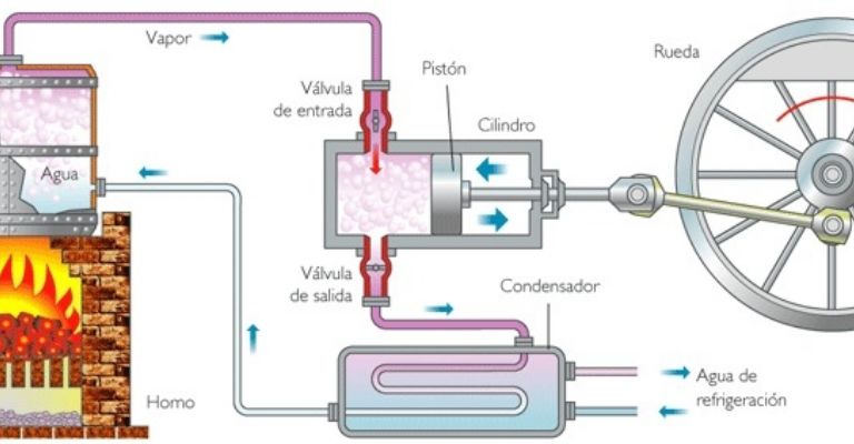 Motores de combustión externa: Son mayormente conocidos como los motores a vapor, tuvieron su aparición en las primeras locomotoras y se les conoce como los propulsores de la industria ferroviaria. Hoy en día son casi obsoletos debido a sus grandes cantidades de emisiones contaminantes.