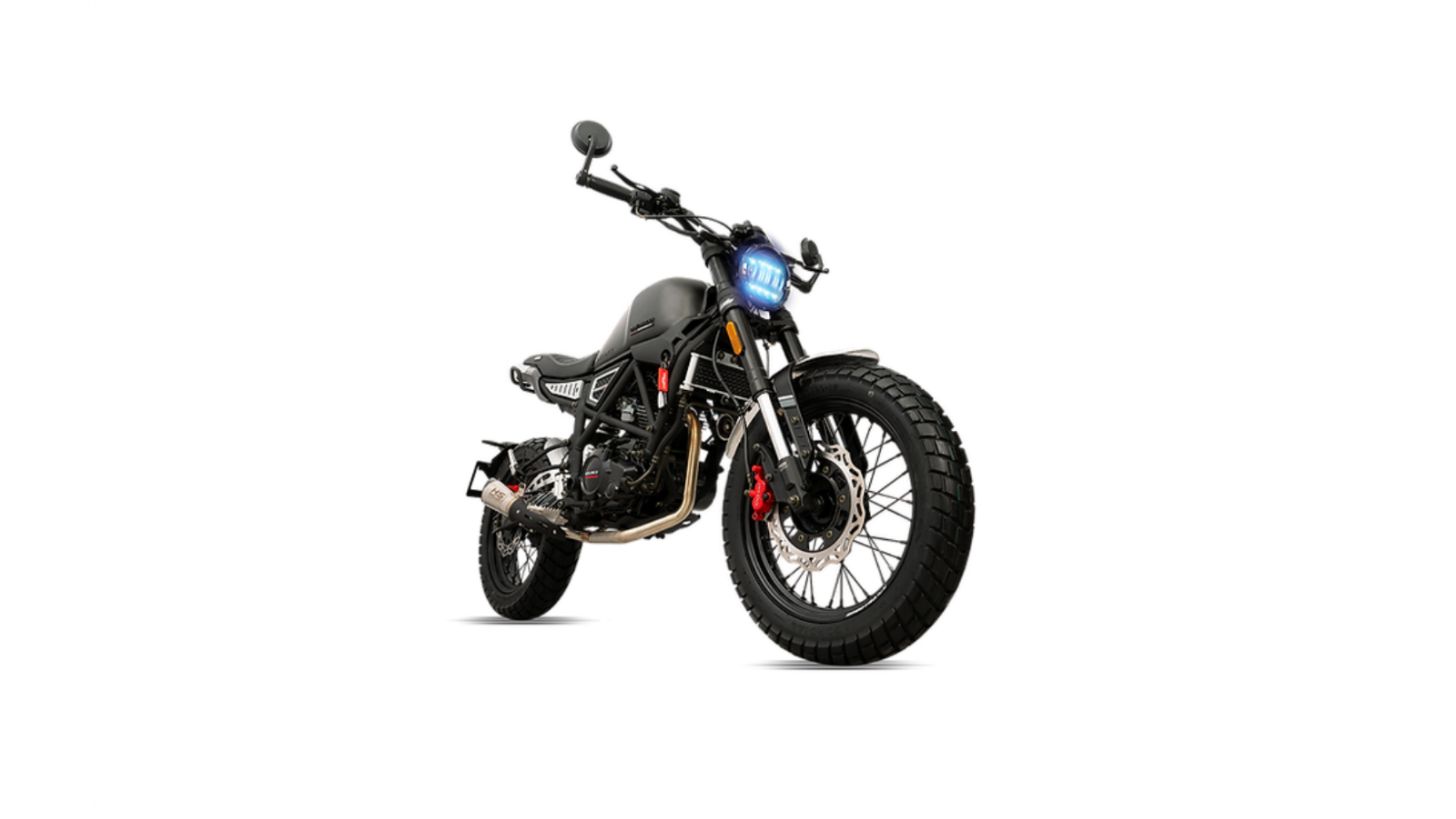 Uno de ellos es la Veloci Dark Thunder, la cual es del tipo scrambler, que es la combinación de una motocicleta de campo y una de carretera.