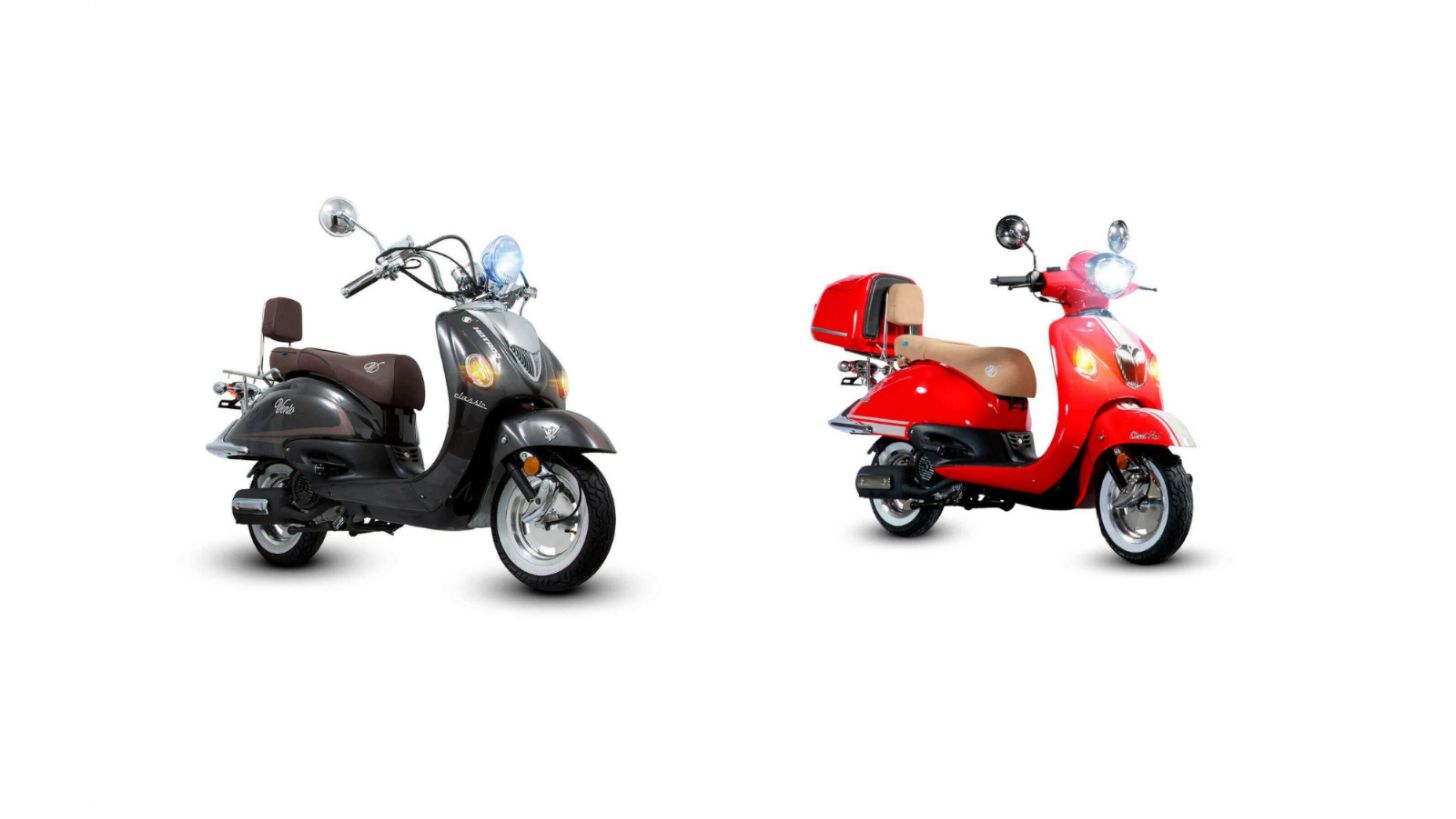 Los dos scooters vintage tienen alarma antirrobo, puerto USB, faro de halógeno, un escape italiano Silverstone y freno de disco delantero para una mayor seguridad.