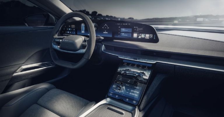Diseño Interior: En el interior, el Lucid Air Sapphire ofrece asientos deportivos con calefacción, ventilación y masaje. El tablero es minimalista y cuenta con una pantalla dual de 34 pulgadas que alberga tanto el panel de instrumentos como el sistema multimedia. También hay una tercera pantalla central para controlar diversas funciones del automóvil.