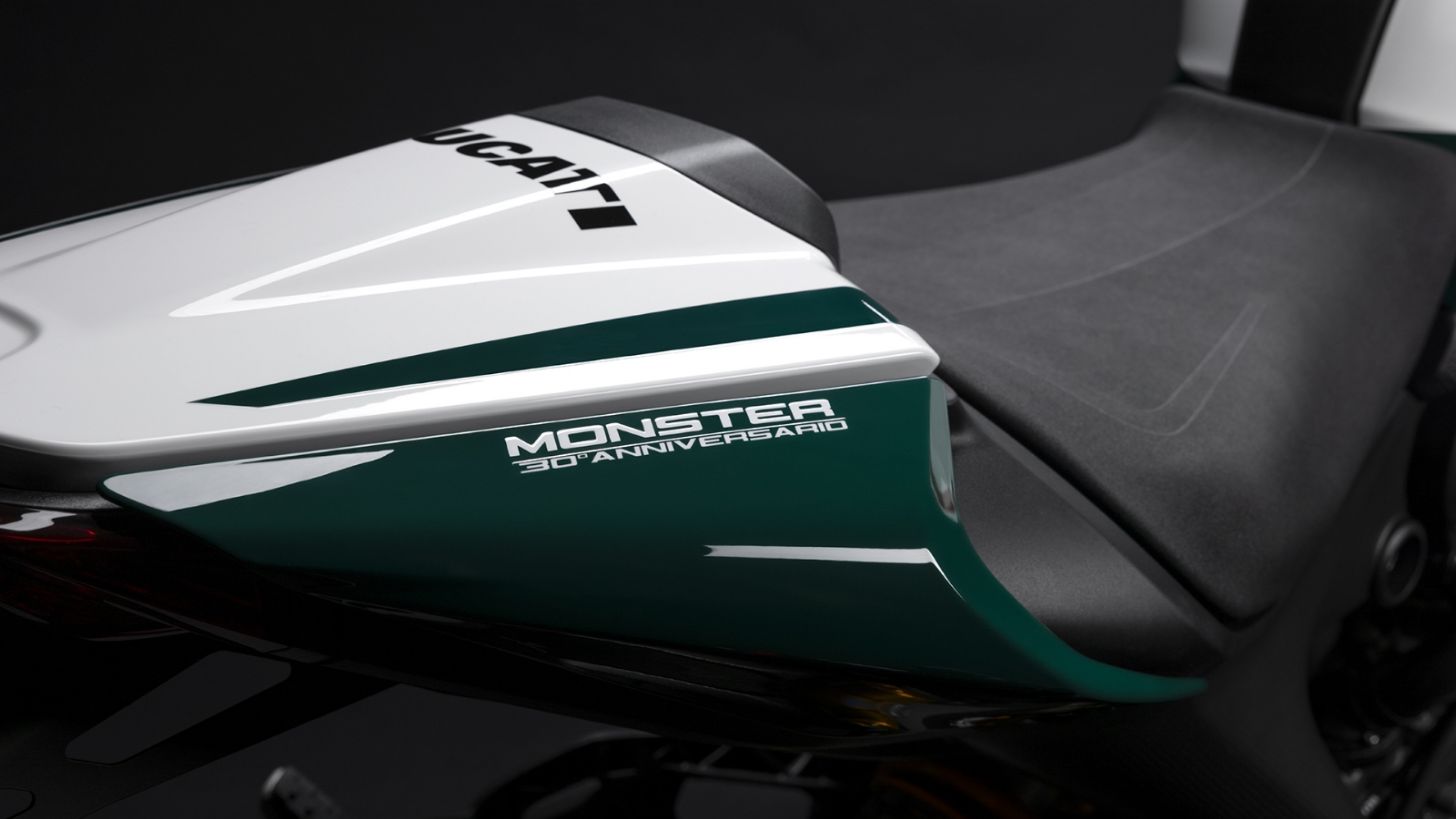 - Librea dedicada con la bandera italiana que rinde homenaje a Monster y sus orígenes, con el logotipo del 30º Aniversario, creado por el Centro Stile Ducati.