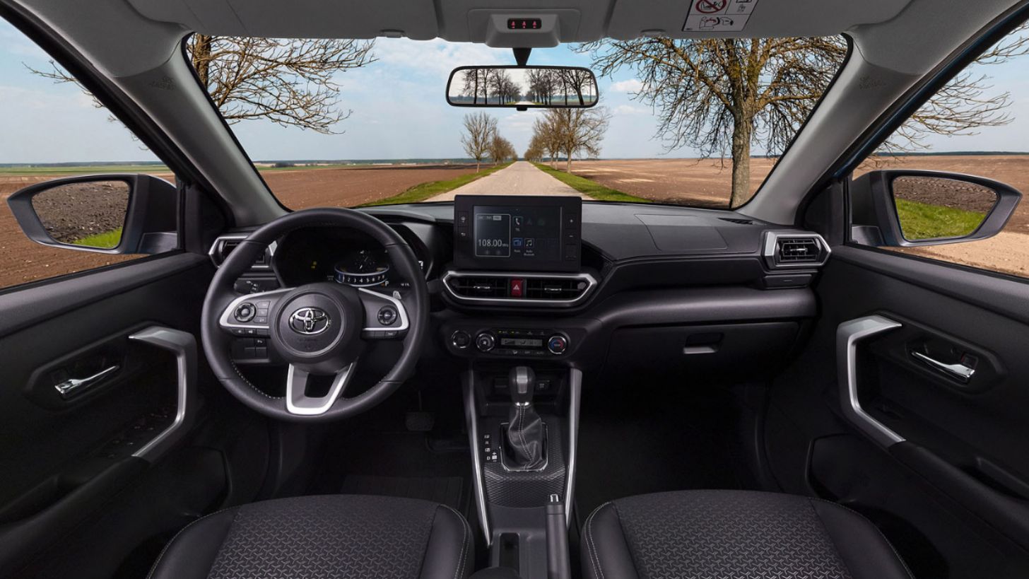 Toyota describe a esta camioneta como un vehículo divertido de manejar, gracias a su motor turbo de 1.0 litros de 3 cilindros, 97 hp y 103 lb-pie, con tracción FWD, es práctica, pues puede albergar hasta 5 pasajeros, su cajuela tiene una capacidad de 369 L y rines de 17”.