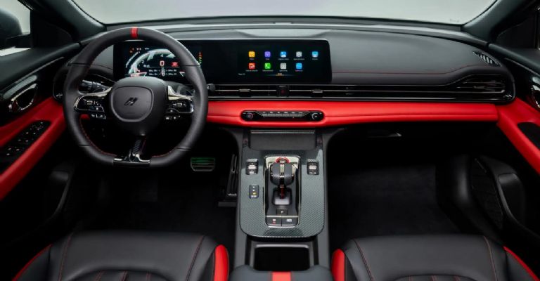 Cuenta con un volante forrado en piel, así como aplicaciones en símil fibra de carbono; tendrá una doble pantalla que al parecer será de 10.25 pulgadas, así como un clúster de 7 pulgadas, la lista sería completada por luces ambientales, selector de cambios, y quemacocos.