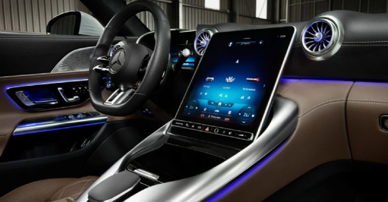 El interior interpreta en clave actual la tradición del primer 300 SL Roadster y conjuga en perfección atributos deportivos con lujo; los impresionantes aspectos destacados de las prestaciones acentúan el perfil deportivo de Mercedes-AMG SL Roadster.