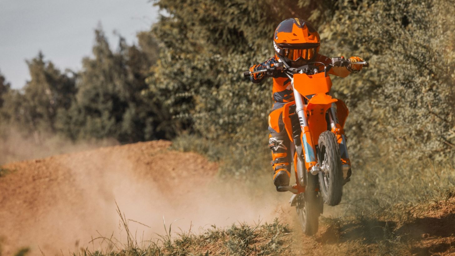 Esta moto KTM, la SX-E 3, es eléctrica y está hecha para que los niños practiquen el deporte del motocross. Es silenciosa y muy fácil de aprender usar.
