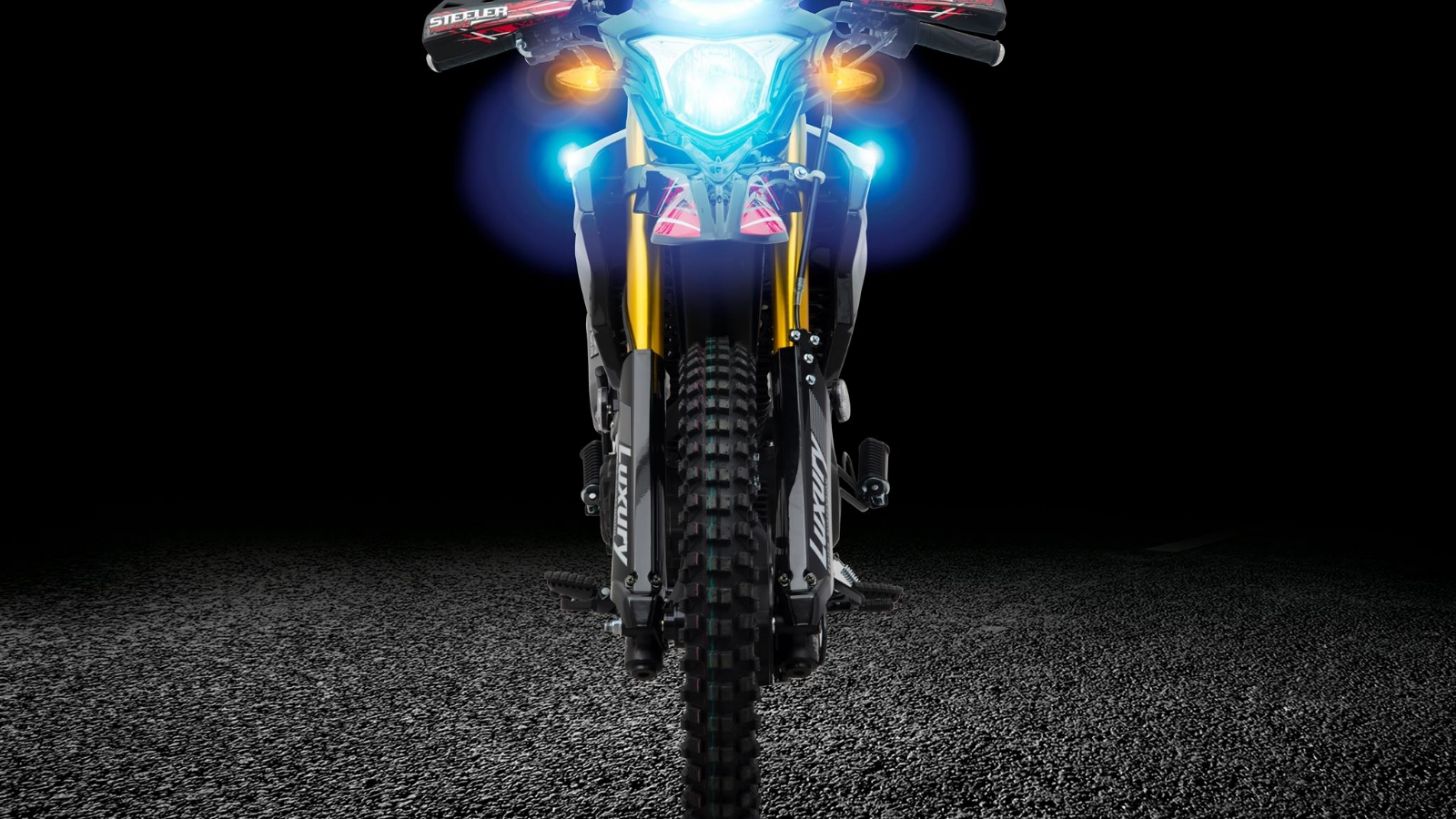 Esta motocicleta doble propósito es modelo 2023 y goza de un increíble rendimiento. Lleva un motor monocilíndrico de 4 tiempos, mientras que la transmisión es estándar de 5 velocidades. Los frenos son de disco, tiene luces y direccionales LED, dispositivo GPS y puerto de carga USB.