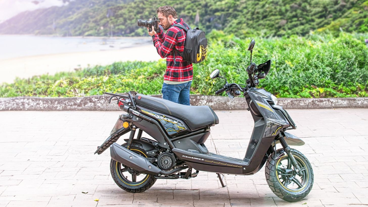 El Carabela Coyote GP se trata de un vehículo motorizado para terrenos asfálticos y sinuosos, como lo explica el fabricante en su portal. Este scooter de Carabela, como cuenta con una parrilla en la parte trasera, también se puede usar como vehículo de trabajo.
