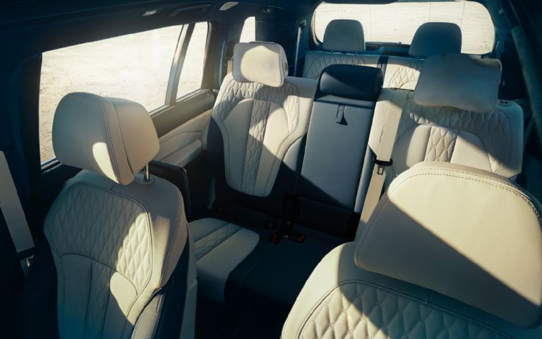 El interior del X7 es un verdadero santuario de lujo y confort. Con tres filas de asientos, puede acomodar hasta siete pasajeros sin sacrificar la comodidad. Los materiales de alta calidad, como la piel Nappa y la madera noble, se combinan con detalles cromados y acabados precisos. Los asientos delanteros cuentan con ajuste eléctrico y calefacción, mientras que la tercera fila ofrece espacio suficiente incluso para adultos.