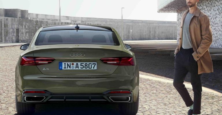 Las amplias entradas de aire y los adornos cromados le dan al frente del Audi A5 Coupé un toque deportivo; cuenta con luz láser Audi, la cual complementa la luz LED de carretera a altas velocidades.