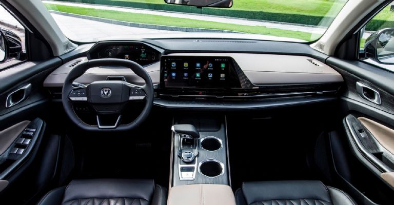 El diseño interior, cuenta con una atmósfera tecnológica, por supuesto hay grandes pantallas en el centro del tablero, una palanca que simula el mando de un avión, volante deportivo con diseño en "D"; múltiples asistencias para una conducción autónoma de otro nivel.