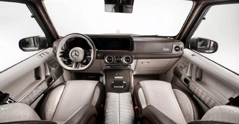 Si el exterior es llamativo, el interior es aún más exclusivo. Carlex Design centró la mayor parte de su atención en la cabina, tapizando los asientos con el codiciado cuero Himalaya. Este cuero de alta gama, extraído de cocodrilos se popularizó por los bolsos Hermès Birkin.