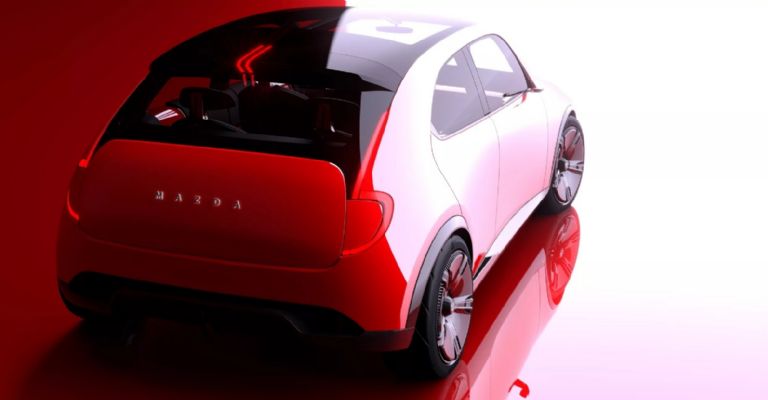 El exterior del prototipo es limpio, adaptando los elementos distintivos de la nueva Serie Vision-X. Incorpora una parrilla completamente cerrada, acentuada por los característicos "colmillos" iluminados y un logotipo de Mazda brillante. El modelo luce faros pequeños y espejos retrovisores digitales. Se complementa con un techo panorámico de cristal.