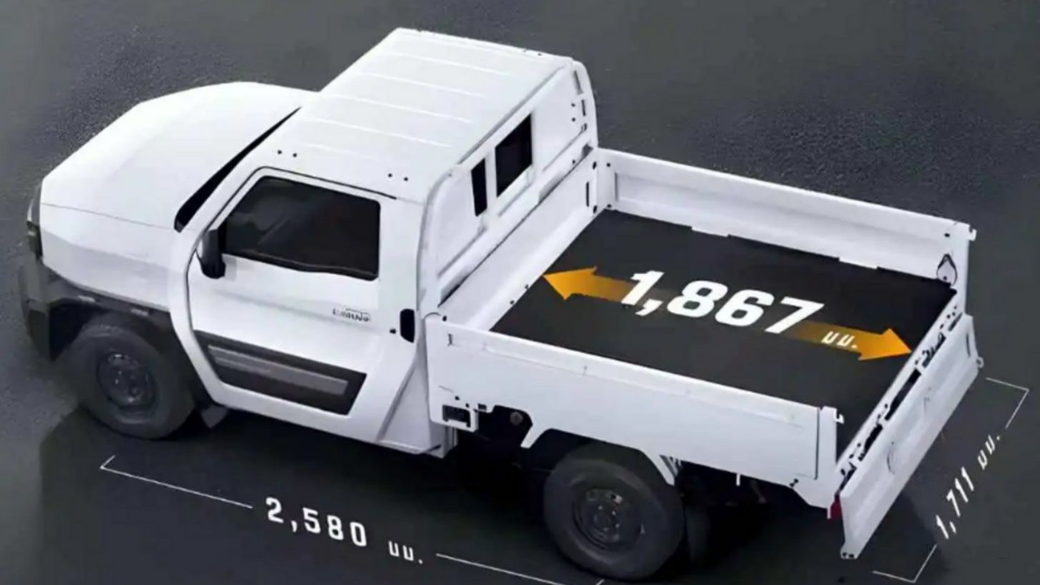 Esta camioneta en diseño es agresiva, con faros de corte futurista, pero parrilla definida y defensa que impone. Algo destacable son los pasos de rueda definidos y rines de acero, como un vehículo de carga y de batalla. Es de una sola fila de asientos y es perfecta para los caminos estrechos.