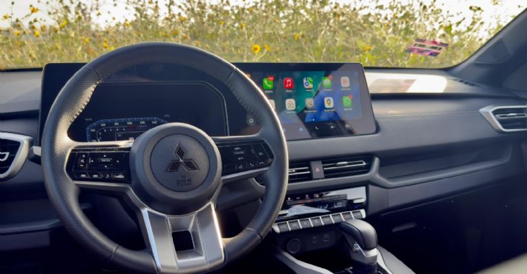 El interior de la Outlander Sport 2025 es funcional y duradero. Si bien no busca competir con acabados premium, ofrece todo lo necesario como una pantalla táctil central de 12.3 pulgadas con compatibilidad para Apple CarPlay y Android Auto de manera inalámbrica y lleva además cargador por inducción.
