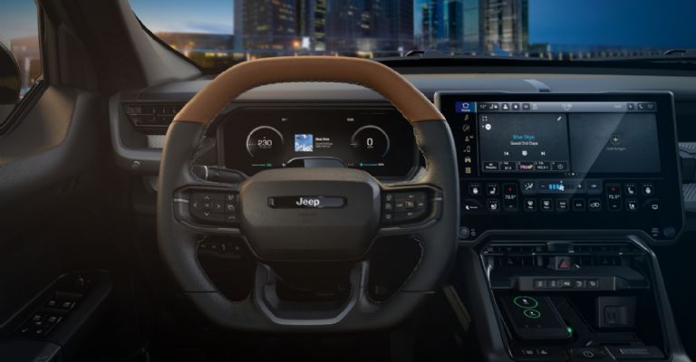 El Recon incorpora de serie el sistema de tracción integral eléctrica y el exclusivo Selec-Terrain de Jeep, que incluye modos de manejo adaptados (Rock, Auto, Sport, Snow y Sand). La versión Moab, que será la primera en llegar al mercado, está preparada para el manejo off-road con neumáticos de 33 pulgadas de serie y una distancia al piso de 9.1 pulgadas