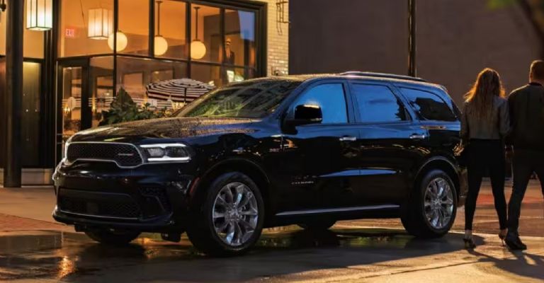 El diseño frontal del Durango en estas proyecciones adopta varios elementos clave del nuevo Charger. La parte delantera muestra faros rectangulares enmarcados por una barra luminosa que se extiende a lo largo del frente, justo debajo de una parrilla superior oscurecida, replicando la identidad del Charger. La fascia inferior luce una segunda parrilla más grande, flanqueada por dos tomas de aire funcionales y un divisor oscurecido que acentúa su postura deportiva.
