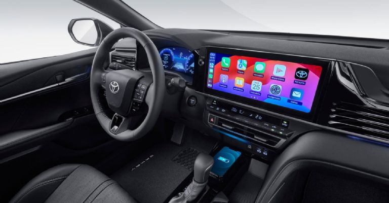El interior del Toyota Camry 2025 también ha sido renovado, algunos acabados vienen con tapicería Softex con detalles en blanco o negro, otros tienen material de cuero con costuras de contraste.