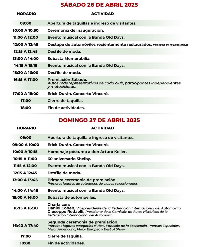En De Cero a 100 te mostramos los horarios de cada actividad del Gran Concurso Internacional de Elegancia: