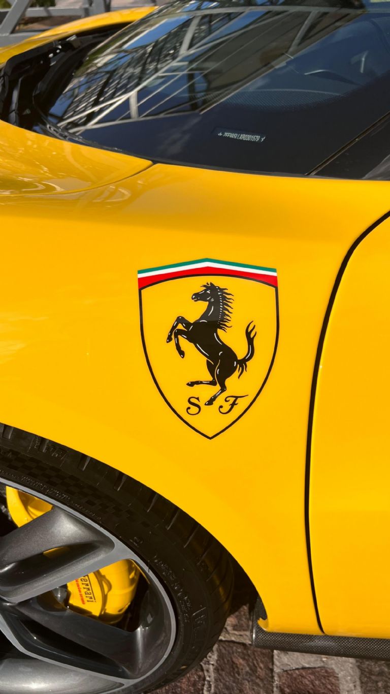 El escudo de guardabarros pintado a mano de Ferrari, conocido como Scudetto Aerografato, es una de las opciones más exclusivas y artesanales que ofrece el programa de personalización de la marca; a diferencia del emblema de plástico en relieve estándar, esta versión es pintada meticulosamente con aerógrafo directamente sobre el guardabarros por los maestros artesanos de Ferrari en Maranello, cada escudo se pinta a mano con capas de colores vibrantes y barniz transparente, sin necesidad de plantillas, solo con mano firme y experiencia.