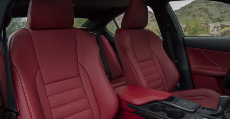 Los cinturones de seguridad rojos, una insignia con número de serie y otros detalles se aplican con esmero en todo el interior, creando una estética cohesiva y de alto rendimiento que realza aún más el estilo potente y agresivo del IS 500.