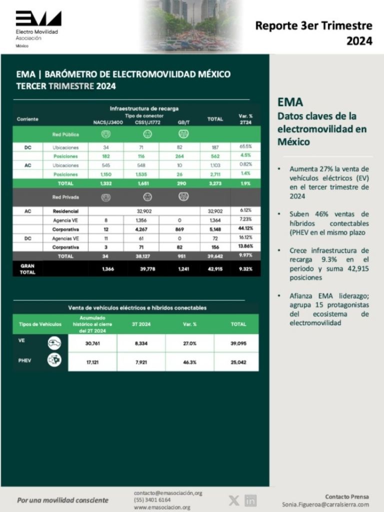 Ahora, vale la pena destacar que no solo la infraestructura de carga ha tenido un buen crecimiento; las ventas de los autos electrificados ha incrementado también, pues de acuerdo a la EMA, el tercer trimestre del 2024 se comercializaron 8,334 vehículos EV, lo que representa un aumento del 27% en comparación con el trimestre anterior.