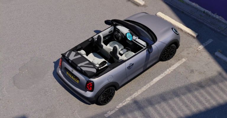 La capota eléctrica 3 en 1 con el exclusivo diseño Union Jack en tela es distinta a todas las demás, su silencioso mecanismo inteligente de plegado en Z permite abrirla por completo en 20 segundos exactos, incluso a velocidades de hasta 30 km/h; también puede funcionar como techo solar para abrirse hasta 40 cm y disfrutar del sol mientras conduces por la ciudad.
