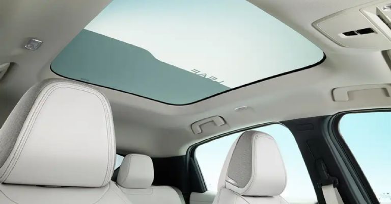 Al no requerir una parrilla convencional, los diseñadores de Nissan aprovecharon para integrar más superficie del color de la carrocería en el frente, logrando una apariencia más uniforme. Los faros LED están unidos por una delgada franja luminosa que recorre todo el ancho frontal, acentuando visualmente la amplitud del vehículo.