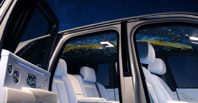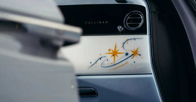 La galaxia en la que vivimos ha sido pintada a mano en el techo, representando la banda de estrellas y la "neblina cósmica" visible desde la Tierra. Según Rolls-Royce, este proceso, totalmente artesanal, requirió más de 160 horas de trabajo de un experto, que utilizó pinceles de maquillaje para crear el elegante efecto de neblina. Además, se aplicaron sutiles toques de colores como azul y naranja para darle un efecto espacial, haciendo del Cullinan Cosmos un vehículo espectacular desde adentro.