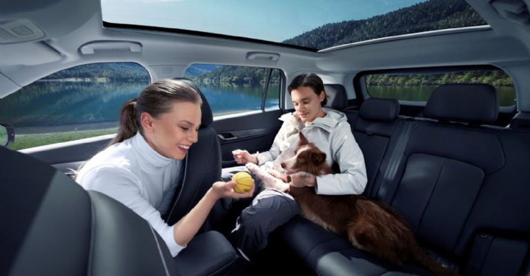 Incorpora un panel de instrumentos de 8 pulgadas que va acompañado de una pantalla de 13.2 pulgadas con Android Auto y Apple CarPlay. Además de un sistema de luz ambiental, cargador de 50W, asientos ventilados en la primera fila y una cabina con piel sistetica pet-friendly. En el apartado de seguridad llega de base con una cámara de 540 grados, 19 ADAS, 6 bolsas de aire y asistencias como frenos ABS, Control de tracción (ESP y ABD).