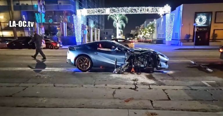 Un video captado en las calles de Hollywood ha mostrado otra cara del actor. En el accidente B. Jordan se encuentra al volante de su Ferrari 812 Superfast azul, al costado se nota un Ferrari 450 Italia, donde se prebé que el ferrari del joven actor terminó como pérdida total.