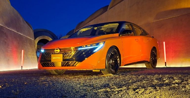 En cuestiones exteriores, el nuevo Sentra 2026 muestra un frente completamente renovado, con una gran parrilla en negro, contrastante con el resto de la carrocería, y faros que dan una apariencia agresiva y futurista a la vez.
