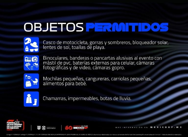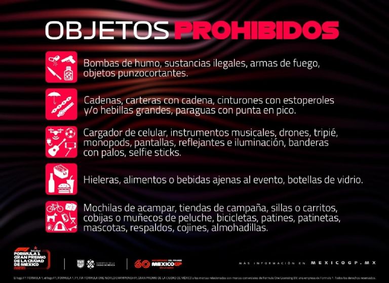 Mientras que los objetos prohibidos durante el GP de México 2022 son los siguientes: