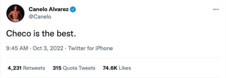 Como era de esperarse, el tweet del boxeador mexicano también ha causado gran revuelo en redes sociales, pues hasta el momento cuenta con más de 70 mil favorito, 315 tweets citados y 4,221 retweets.