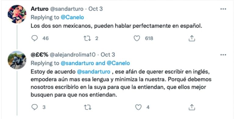“Escriben en inglés porque quieren mandar el mensaje a nivel mundial y no de manera nacional. Ellos piensan en grande, otros de manera local. Ahí la diferencia”, “Los dos pueden hablar y escribir en el idioma que les de la gana”, “Te recomiendo Inglés Sin Barreras, nunca es tarde para superarse”.
