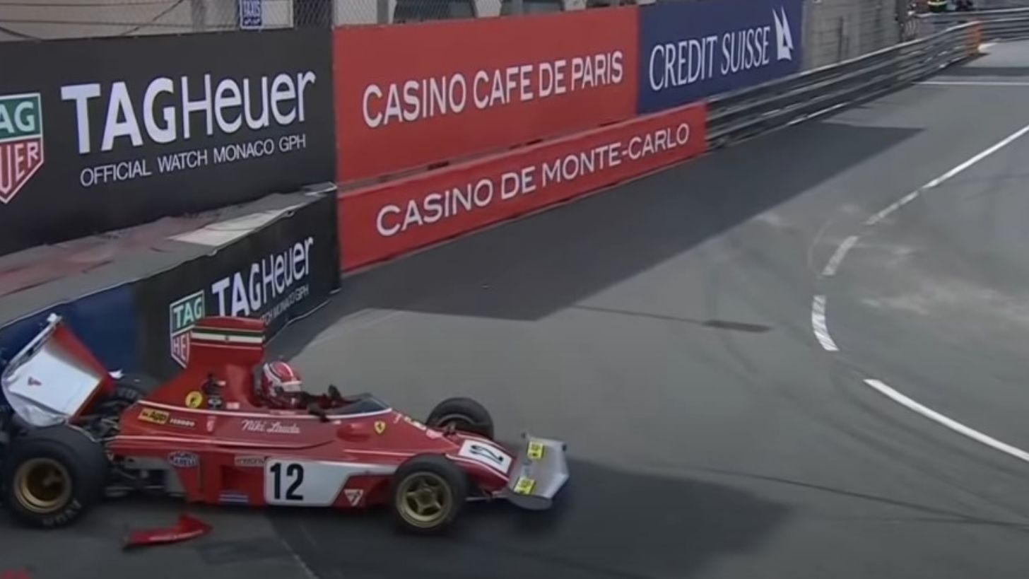 El impacto de Charles Leclerc en el Histórico Gran Premio de Mónaco no pasó a mayores, aunque el 312B3 sí presentó daños considerables para la parte trasera.