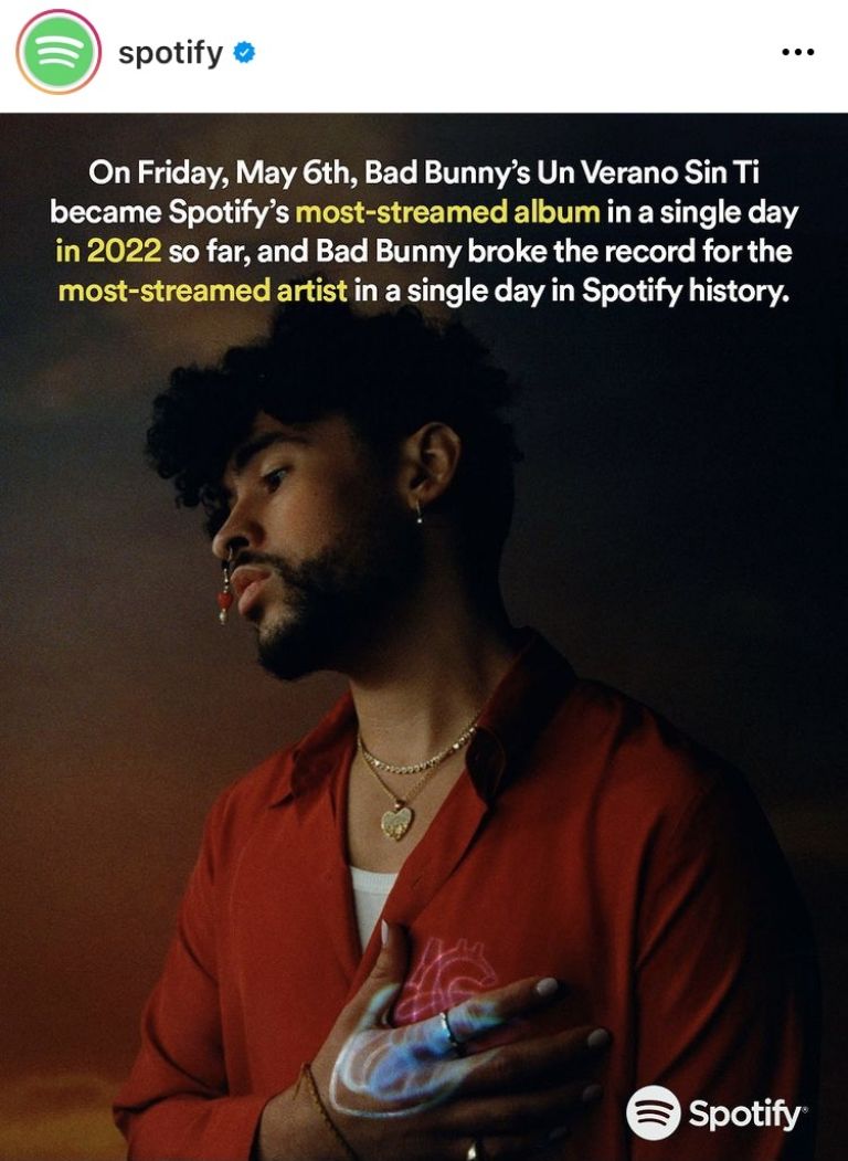 Aunque no se dedica al mundo deportivo sino al de la música, Bad Bunny puede ser considerado como un campeón absoluto en su disciplina, luego de romper el récord de la mayor cantidad de canciones escuchadas por stream en un solo día, y ser el artista más escuchado en nuestro país.