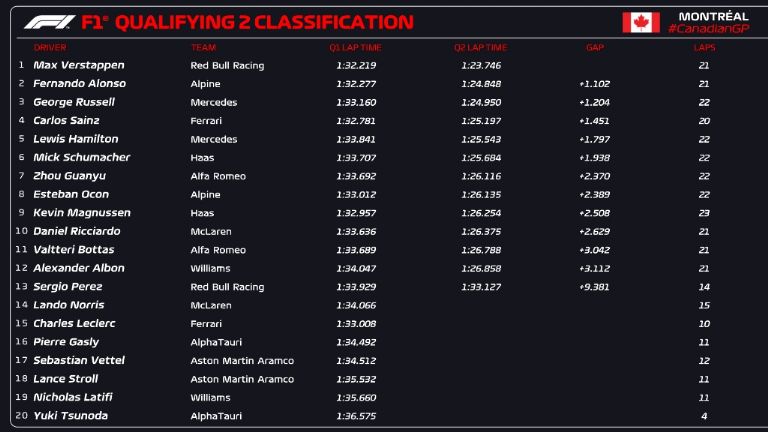 Lista de eliminados en esta Q2 para el GP de Canadá