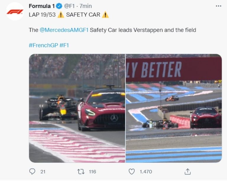 Este domingo 24 de julio 2022 se disputa el Gran Premio de Francia de la Fórmula 1, el cual había sido liderado desde un inicio por el monegasco Charles Leclerc, tras ayer haber obtenido la 'pole position' en las pruebas de clasificación. Sin embargo, en la vuelta 18, de las 53 del circuito Paul Ricard, el piloto de Ferrari tuvo un accidente e impactó contra el muro, lo que lo dejó fuera de la carrera 12 del Mundial de F1.