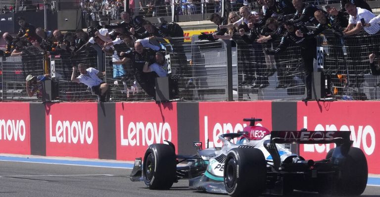 Otra buena noticias para Mercedes fue la tercera posición de Rusell, quien superó al mexicano Checo Pérez en las últimas 2 vueltas, lo que envió al piloto de Red Bull al cuarto sitio, dejándolo fuera del podio.