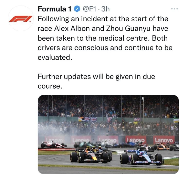 Hasta hace unos momentos, finalmente se ha conocido el estado de salud de Guanyu Zhou. Luego de una visita rápida al hospital se supo que el piloto afortunadamente estaba consiente y no presentaba ninguna fractura.