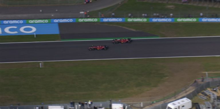 Luego de salir de pits Charles Leclerc se encontró de frente con Carlos Sainz y preguntó a Ferrari si era buen momento para pelear contra su propio compañero de equipo, por lo que la escudería de Maranello ordenó al español que dejara el paso libre al monegasco para pelear por el podio contra Lewis Hamilton.