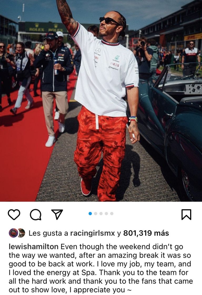 A través de sus redes sociales, el 7 veces campeón también se aseguró de disculparse con la afición que había acudido a Spa-Francorchamps únicamente para verlo correr.