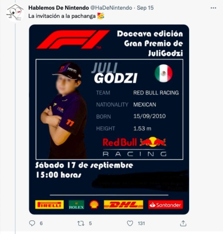 En el hilo de Twitter se puede ver que las invitaciones también fueron intervenidas por la mamá de Julián, poniendo una imagen del pequeño enfundado en el uniforme de la escudería de las bebidas energéticas, y utilizando los colores oficiales.