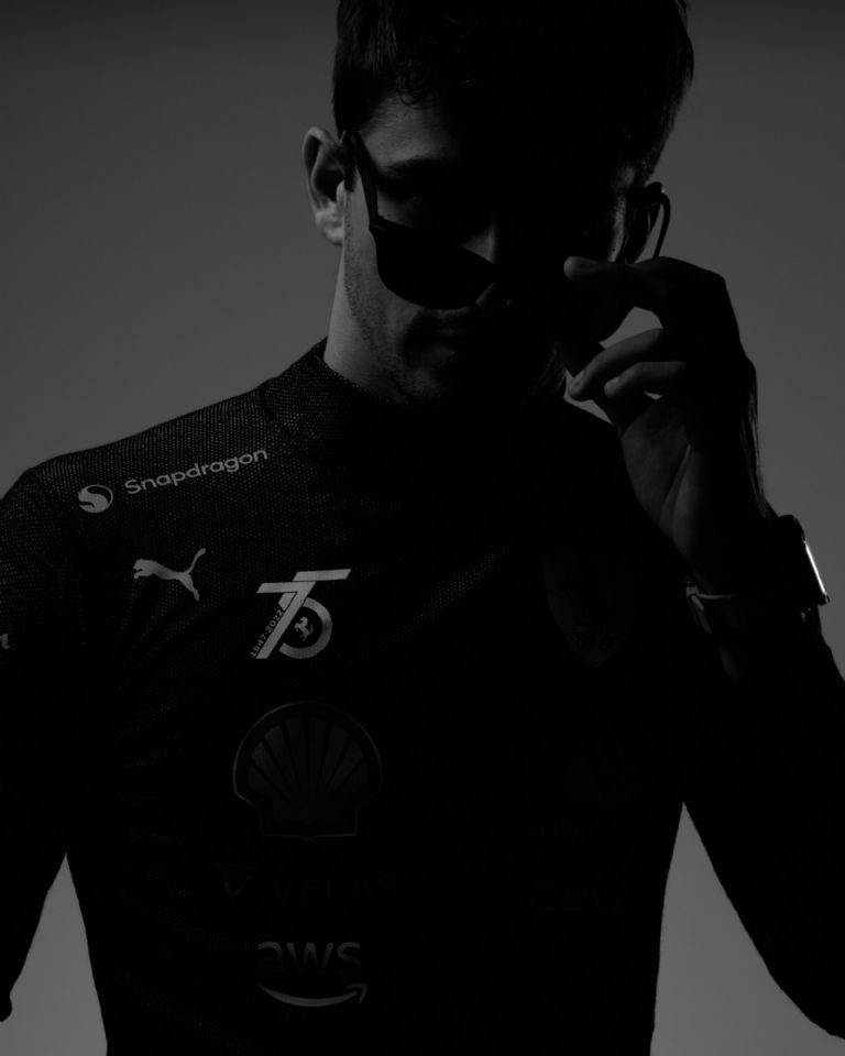 Las playeras presentadas a través de redes sociales tienen una especie de hombreras de color gris oscuro en las que se puede ver el escudo de Ferrari del lado izquierdo, y el logo de la celebración de 75 años del lado derecho.